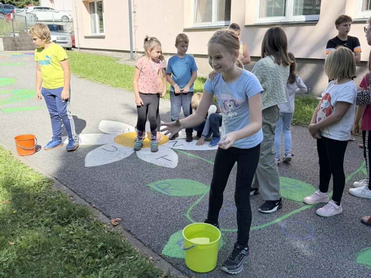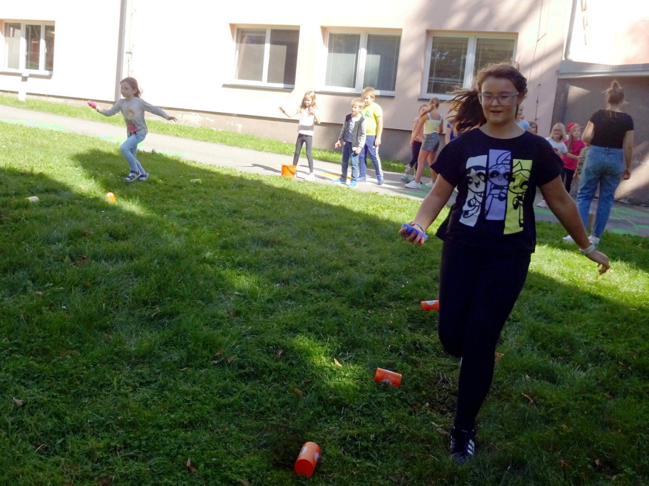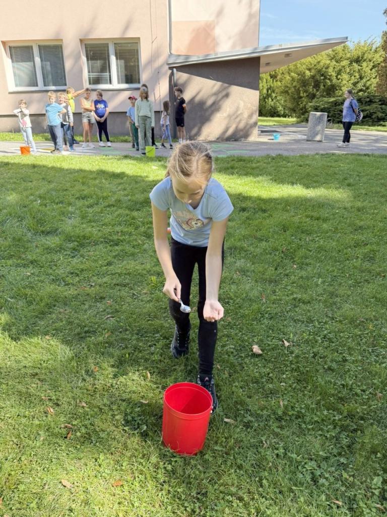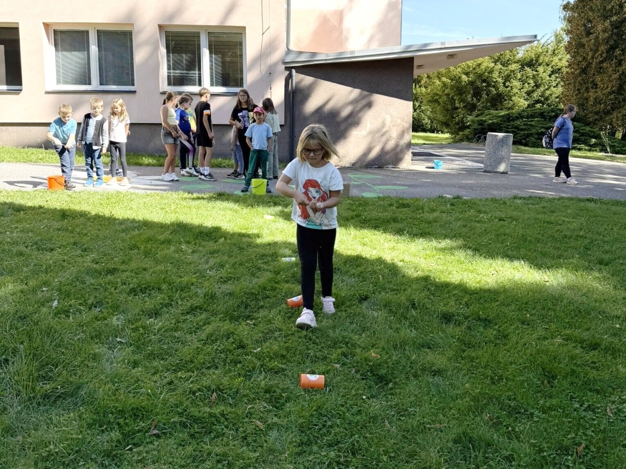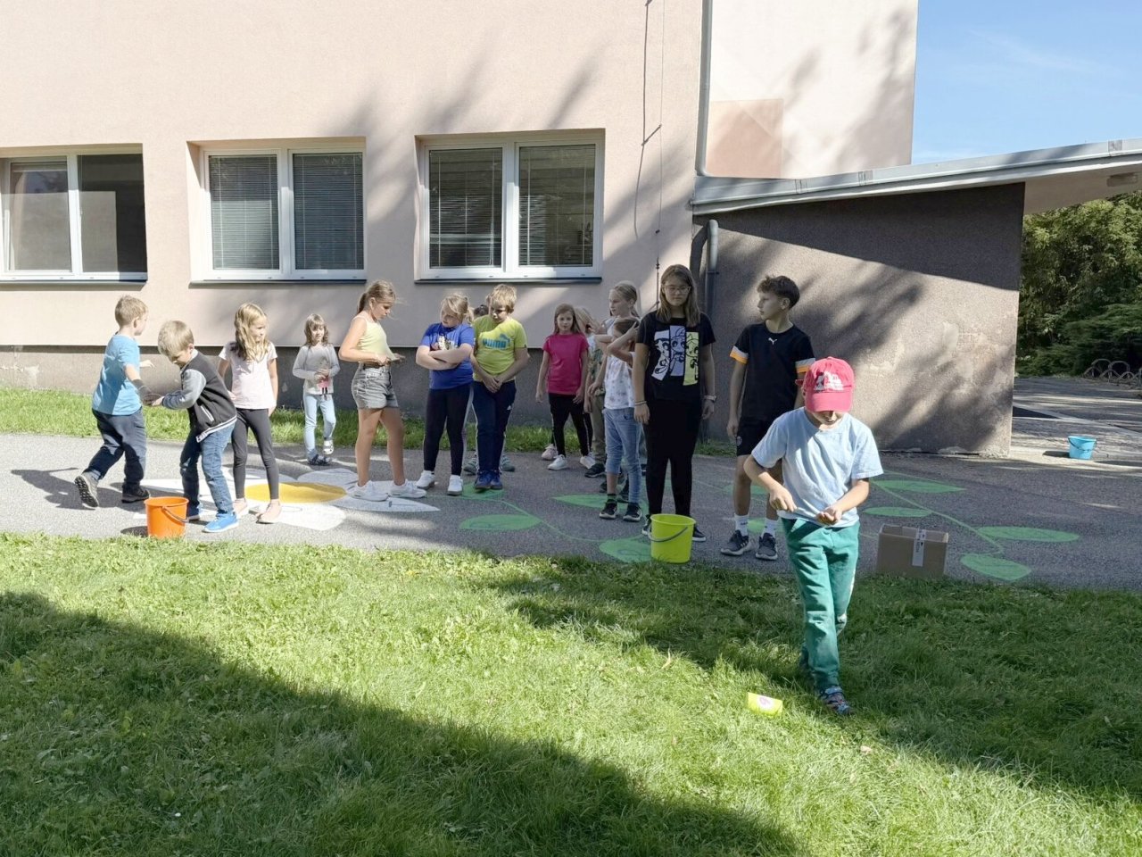 V pátek 19. září si děti ze školní družiny užily za slunečného počasí her a soutěží při „Vodní olympiádě“. Byly pro ně připraveny štafety v přenášení vody injekční stříkačkou, houbičkou na nádobí nebo lžící. Záleželo nejen na rychlosti, ale i opatrnosti a trochu i šikovnosti. V samotném závěru mohly děti proudem vody shazovat plastové kelímky. Odměnou jim byl nejen sladký pamlsek, ale i krásně prožité slunečné odpoledne na školní zahradě.