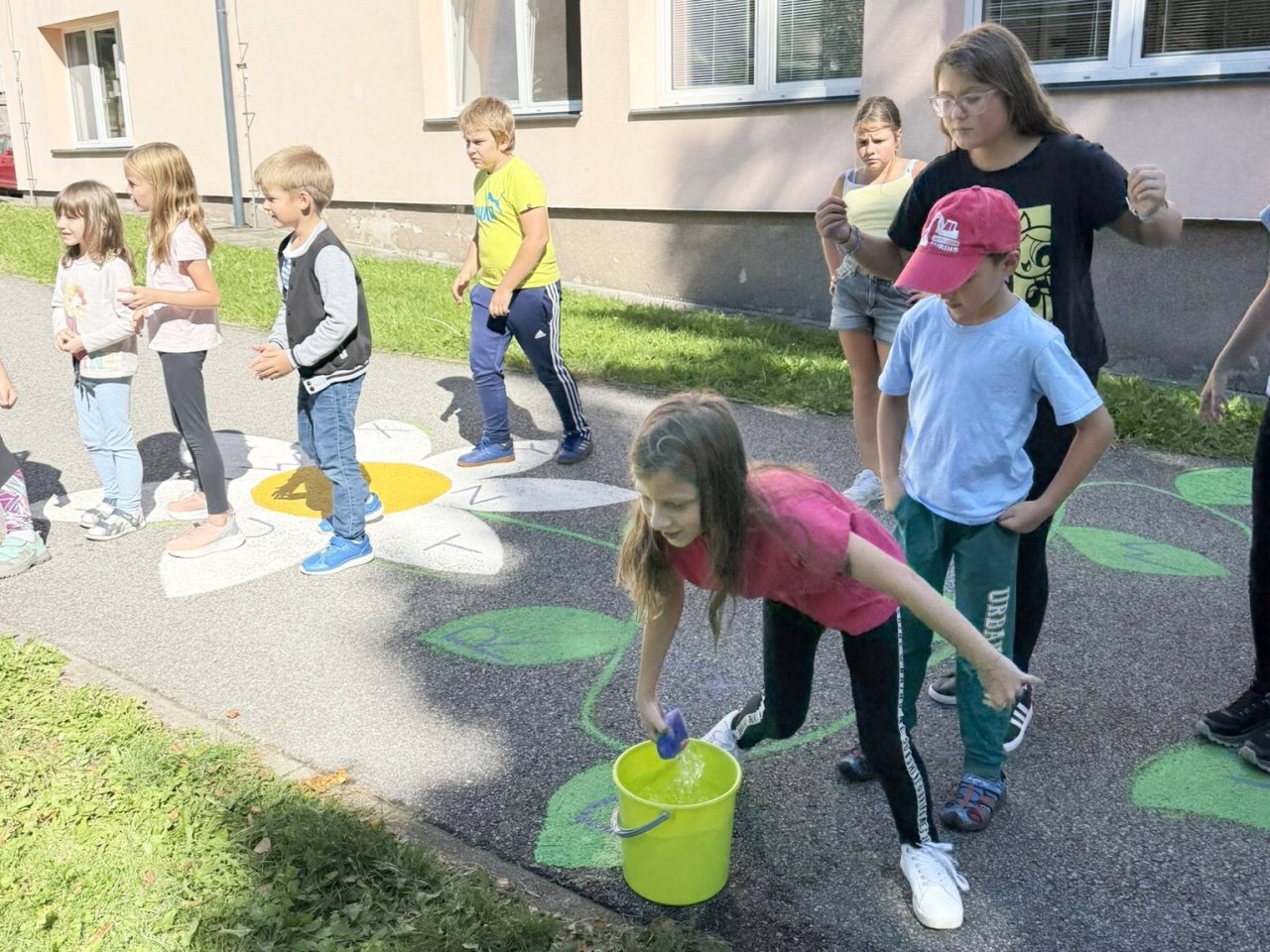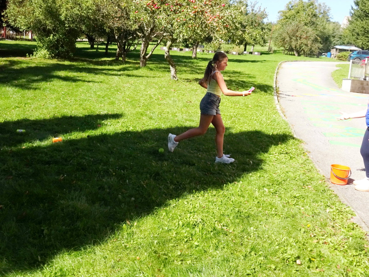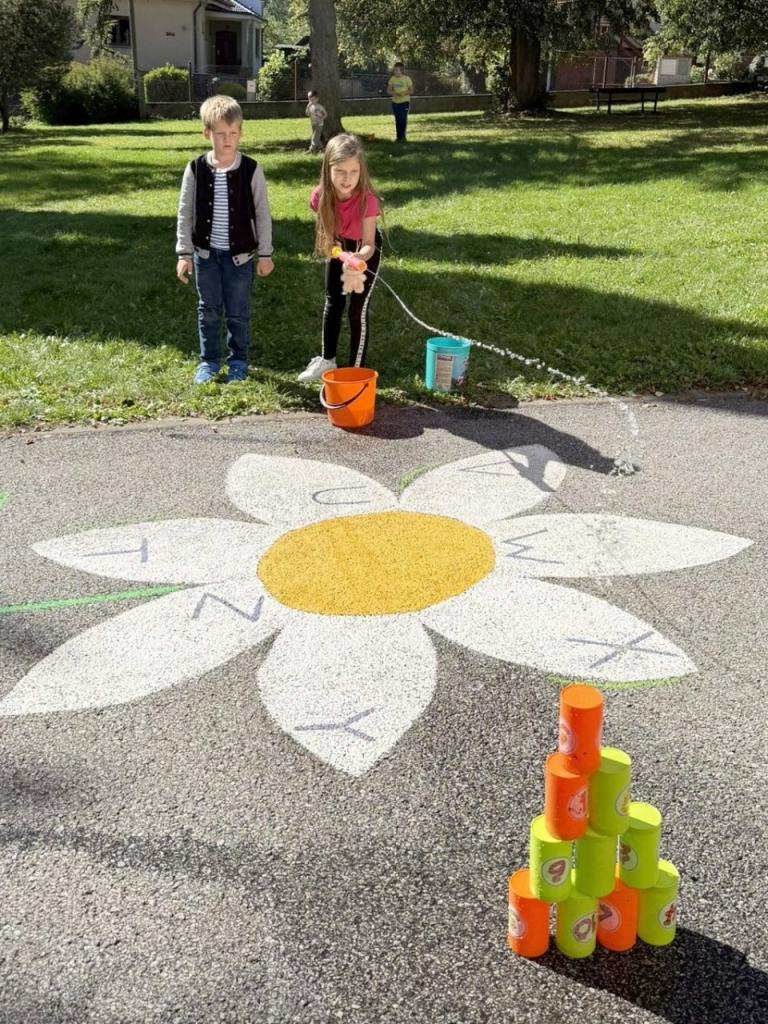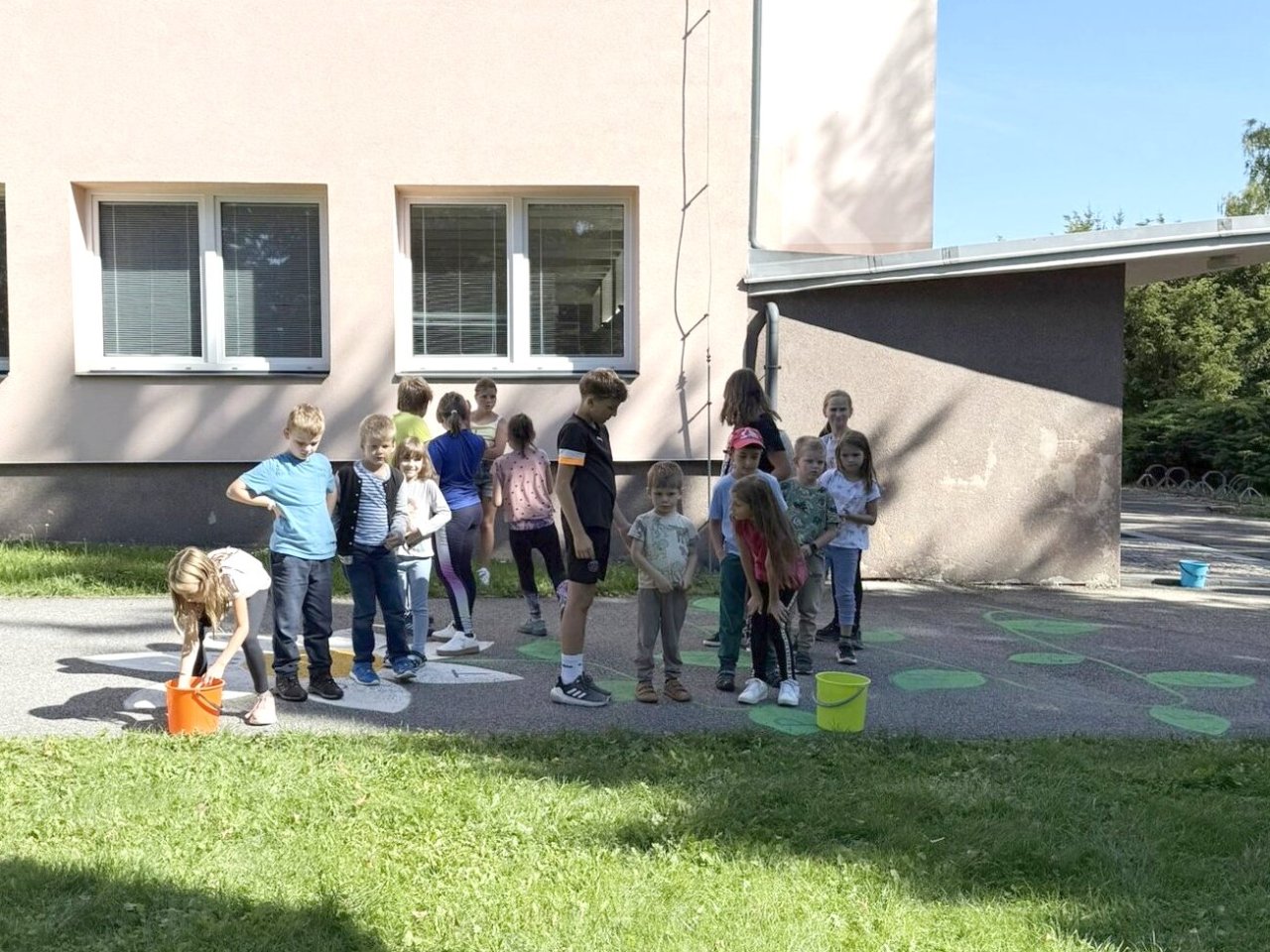 V pátek 19. září si děti ze školní družiny užily za slunečného počasí her a soutěží při „Vodní olympiádě“. Byly pro ně připraveny štafety v přenášení vody injekční stříkačkou, houbičkou na nádobí nebo lžící. Záleželo nejen na rychlosti, ale i opatrnosti a trochu i šikovnosti. V samotném závěru mohly děti proudem vody shazovat plastové kelímky. Odměnou jim byl nejen sladký pamlsek, ale i krásně prožité slunečné odpoledne na školní zahradě.