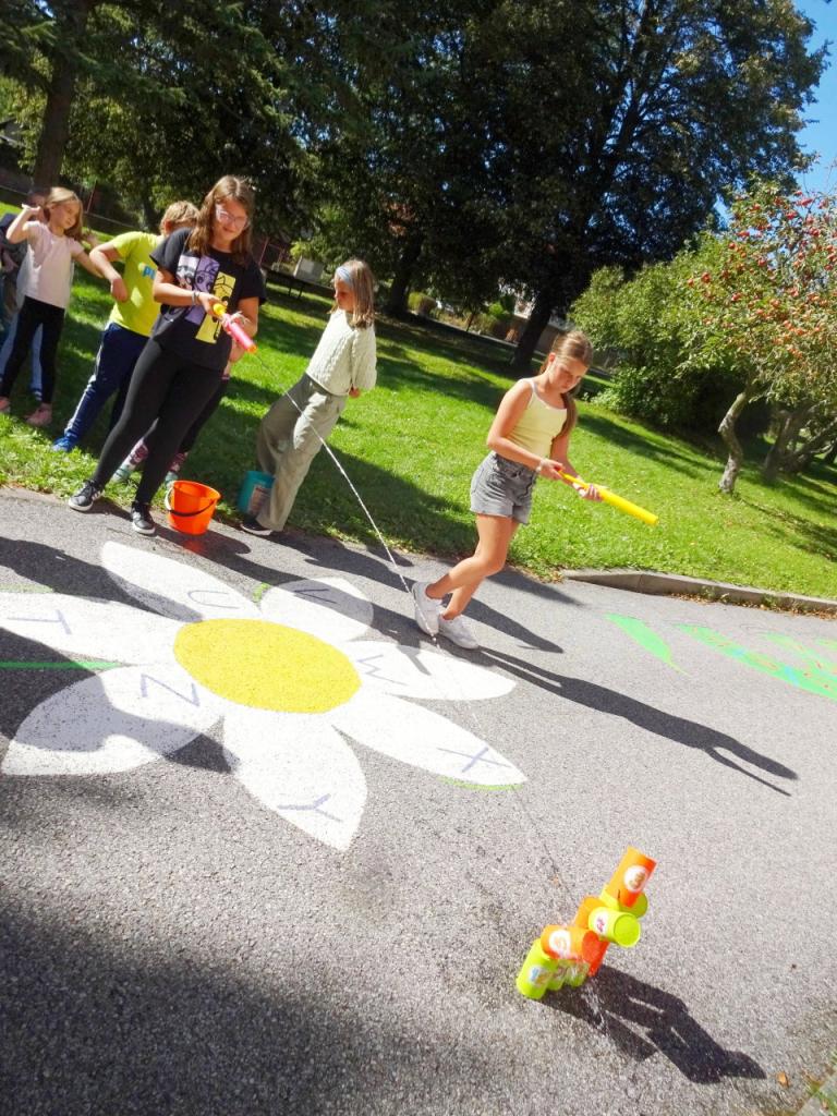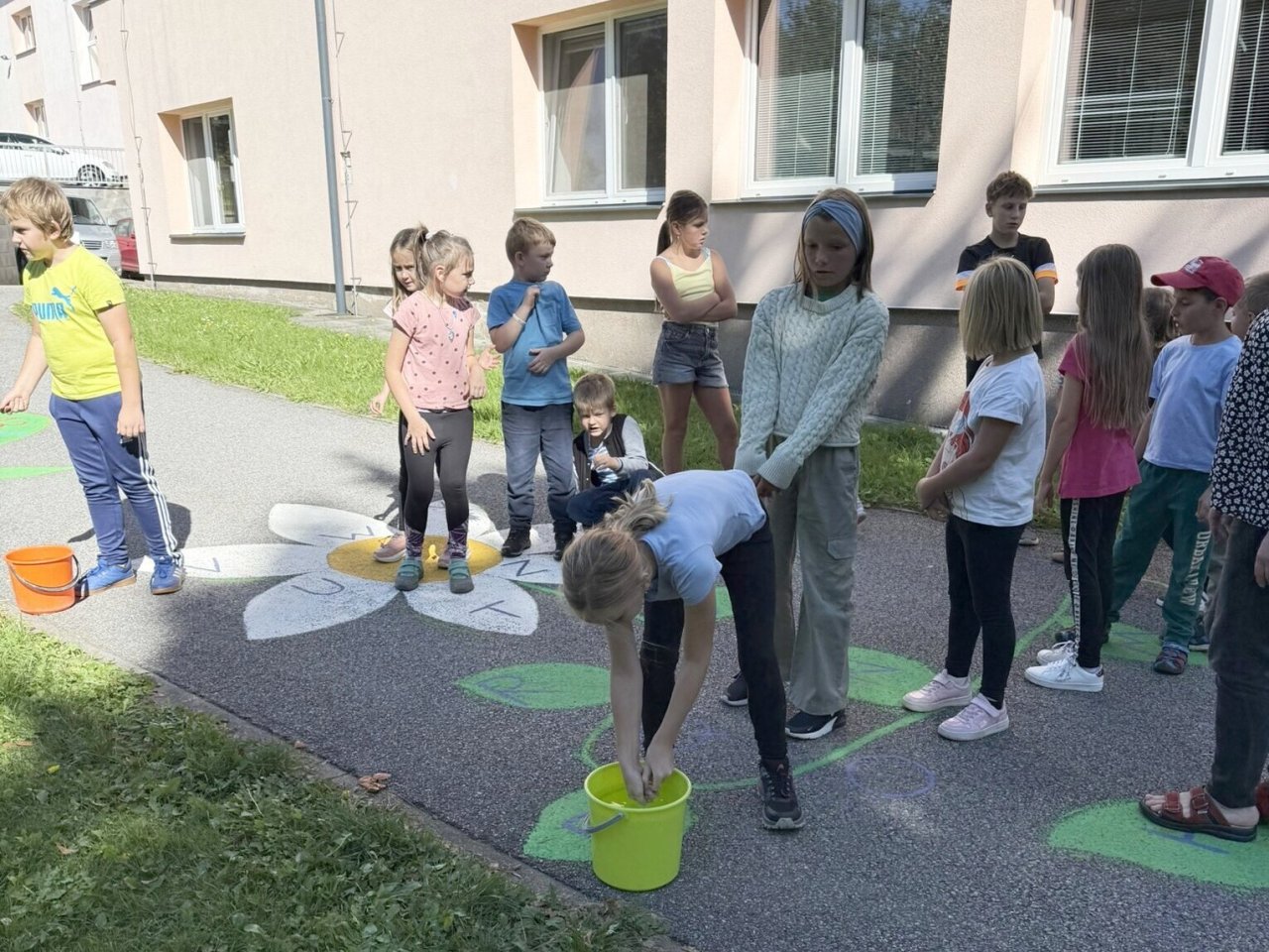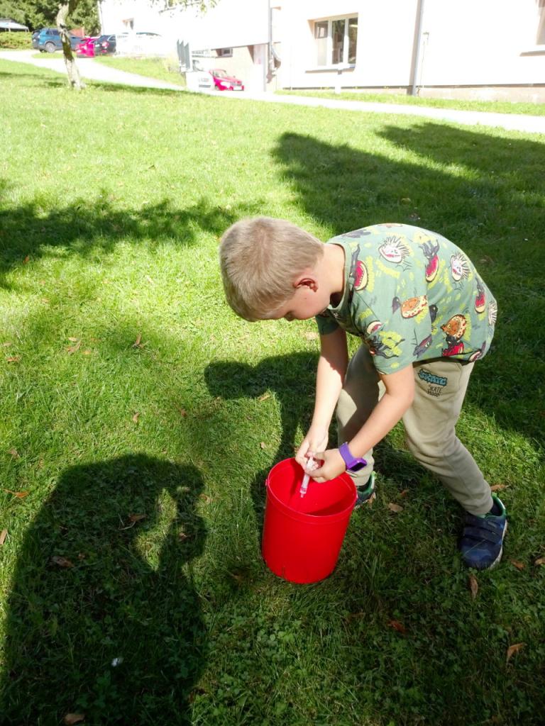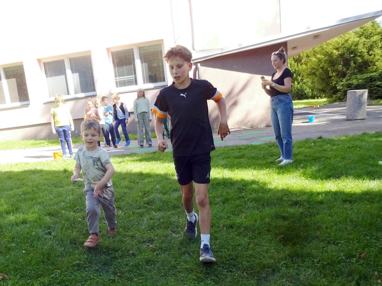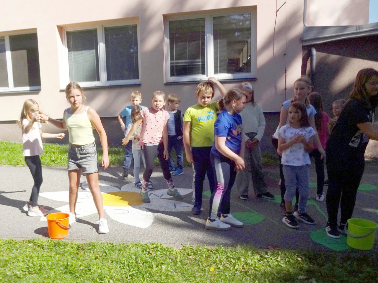 V pátek 19. září si děti ze školní družiny užily za slunečného počasí her a soutěží při „Vodní olympiádě“. Byly pro ně připraveny štafety v přenášení vody injekční stříkačkou, houbičkou na nádobí nebo lžící. Záleželo nejen na rychlosti, ale i opatrnosti a trochu i šikovnosti. V samotném závěru mohly děti proudem vody shazovat plastové kelímky. Odměnou jim byl nejen sladký pamlsek, ale i krásně prožité slunečné odpoledne na školní zahradě.