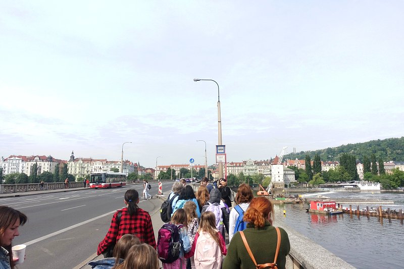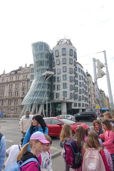 Jejich cílem byla Galerie Tančící dům , kde navštívily výstavu „Šaty, které tančí“. Tato expozice byla věnovaná českým návrhářům, kteří navrhovali šaty a kostýmy na soutěž České televize „Hvězdy, které tančí“. Nejdříve nás pan průvodce s touto výstavou seznámil a nejen s ní, ale i s historií, současností a technickým zázemím „Tančícího domu“. Potom už se každá z nás těšila z vystavených kostýmů a šatů, ve kterých vystupovaly známé osobnosti – moderátoři Tereza Kostková a Marek Eben, herci, zpěváci nebo sportovci. Po prohlídce a nákupu drobných suvenýrů jsme si z Jiráskova náměstí pohlédli Prahu. Odtud jsme se přemístili ke stanici lanovky na Petřín. Nikdo z nás nepočítal s tím, že tu bude stát tak velká fronta turistů. Při představě, že Petřín zdoláme pěšky a budeme si muset vystát další frontu před zrcadlovým bludiště, jsme se dohodli na dalším programu. Využili jsme slunečních paprsků a vydali se na procházku, pro některé z nás, už známými pražskými zákoutími. Nejprve jsme šli přes Újezd na Kampu okolo Sovových mlýnů, kde jsme si prohlédli sochy od Davida Černého. Poté nás naše kroky dovedly okolo vily J. Wericha k Čertovce, kde se natáčely slavné filmy „Jak utopit doktora Mráčka“ nebo nám menším divákům známé filmy o chobotničkách…..Pak jsme se prošli nejkratší ulicí v Praze, podívali jsme se i do uličky nejužší. ..Procházka pak vedla přes Karlův most na Staroměstské náměstí, kam jsme dorazili v pravé poledne a stihli tak přehlídku 12 apoštolů. Odtud jsme se vydali na prohlídku dalšího známého náměstí – Václavského. Protože našim slečnám a dámám po tak dlouhé procházce vytrávilo, nechybělo ani občerstvení a v samotném závěru výletu zmrzlina ve známé pasáži Světozor. A pak už naše kroky vedly na nádraží a odtud vláčkem domů. Dámská jízda se všem líbila a teď se těšíme s kluky na jízdu pánskou.