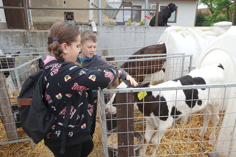 Krmili jsme telátka, podívali se na pár dní stará koťata, selata, právě vylíhlá kachňata. Viděli jsme, jak se dnes dojí krávy. Paní Balcarová nám připravila pohoštění, ochutnávali jsme domácí sýry. Moc děkujeme za pozvání a krásné dopoledne.