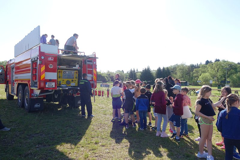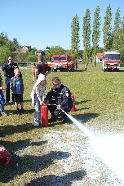 Na hasičském hřišti si každý prohlédl hasičské zásahové vozy, vyzkoušel hašení s různými druhy hasících přístrojů. Největší ohlas mělo předvedení hasičského děla.
