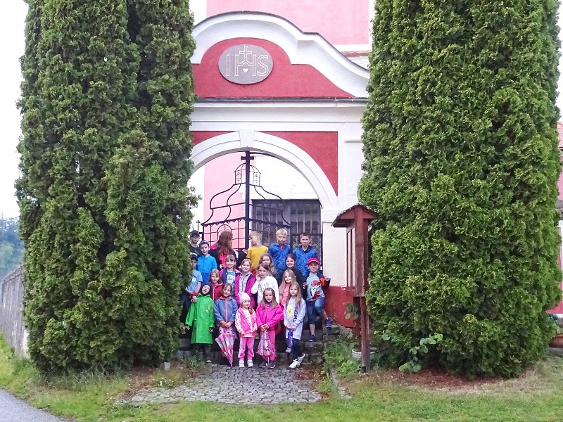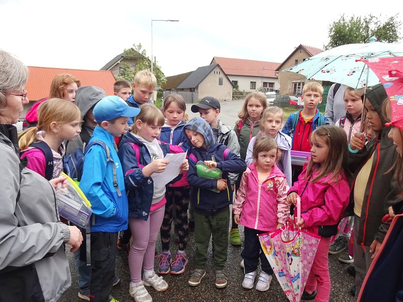 Nikdo z rodičů a dětí do poslední chvíle netušil, kam se vydáme tentokráte. Jen jsme věděli, že to bude letos bez stanování. Škoda. Ve čtvrtek jsme si do školy přinesli plnou polní, která odpoledne zmizela neznámo kam…. A v očekávaný pátek odpoledne přišly bouřky, hromy, blesky a s nimi i velké přívalové deště. Ani nevlídné počasí malé turisty neodradilo. Odpoledne se sešli před školou se svými rodiči. Všichni obdrželi zašifrovanou zprávu. Dětem vítr Foukáček prozradil, že nejprve pojedou vlakem. A tak si vzali buchty od paní Foukáčkové a s pomocí rodičů se přemístili na vlakovou zastávku. Poslední pusa, zamávat a už jen domluvit pravidla a vyluštit další zprávu. Kam pojedeme dál? Jedeme do Vlašimi a na nádraží musíme najít někoho, kdo nám předá další zprávu. V nádražní hale nám další zprávu předala paní ředitelka. Zprávu napsanou pozpátku s dalším úkolem a balíčkem v podobě čokolád. A tak už víme, že pojedeme autobusem do Ctiboře a další vzkaz s úkolem obdržíme, jen pokud nikdo cestou nepromluví. Vydrželi jsme! Ve Ctiboři na nás čeká velké překvapení – vnoučata paní Foukáčkové. Čokoládu měníme za další zprávu a hledáme, kde složíme hlavy. Už to víme, ale chybí nám už jen klíče. Ty měníme za další čokoládu. A teď už jen rozestlat pelíšky, příprava večeře a společné hry. Protože večer ustal déšť, zhostily se nejmladší vnučky paní Foukáčkové rolí průvodkyň a pozvaly děti na procházku na poutní místo Hrádek. Večer už jen umýt a je tu noc plná vyprávění a snů. Ráno společná snídaně, uklidit pelíšky a je tu loučení s obavou, zda nás rodiče podle zašifrované zprávy najdou. Našli a my už se teď těšíme na další výpravy, ale to už v dalším školním roce.