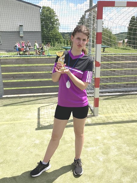 Ovšem výkon byl skvělý a zasloužili by si s trochou štestí alespoň třetí místo. Velkou převahu s Týncem i s Čerčanami ale nepotvrdili gólově a nechali se, jak se říká „vychytat brankářem“. Co se nepovedlo klukům, holky naplnily vrchovatě. Vylepšily loňský první házenkářský pohár a tentokrát získaly 2. místo. Zvláštní pochvalu zaslouží Šarlota Šmídová, která se s neuvěřitelnými 11 brankami ve třech zápasech stala nejlepší hráčkou turnaje. Stejnou pochvalu ale také zaslouží naše brankářka a kapitánka Marie Sochůrková. Obě byly základním kamenem našeho úspěchu. Nemohu ale vynechat ani další hráčky: Verču Bořkovcovou, Lindu Kuncovou, Lauru Brabencovou, Justýnu Tůmovou, Kristýnu Kahounovou, Sofii Šváchovou a Terku Kauckou. K vítězství chybělo jen málo. Ve finále jsme prohráli 1:3 s domácími Netvořicemi, které ovšem mají na škole celoroční kroužek házené. V tomto zápase jsme trochu podlehli tlaku okolí a ustoupili ze své tvrdé obrany a v útoku jsme trefovali jejich bezesporu výbornou brankářku. Soupeř byl určitě hratelný a většina našich hráček je teprve v 8. třídě, takže příští rok můžeme pomýšlet ještě výš.
